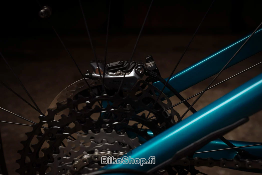sarjan 1×12 vaihteisto, Shimano M420 jarrut ja Foxin varsin